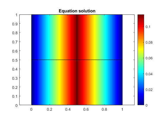 Q=K*u-Fini titol='Equation solution'; colorScale='jet'; plotContourSolution(nodes,elem,u,titol,colorScale)